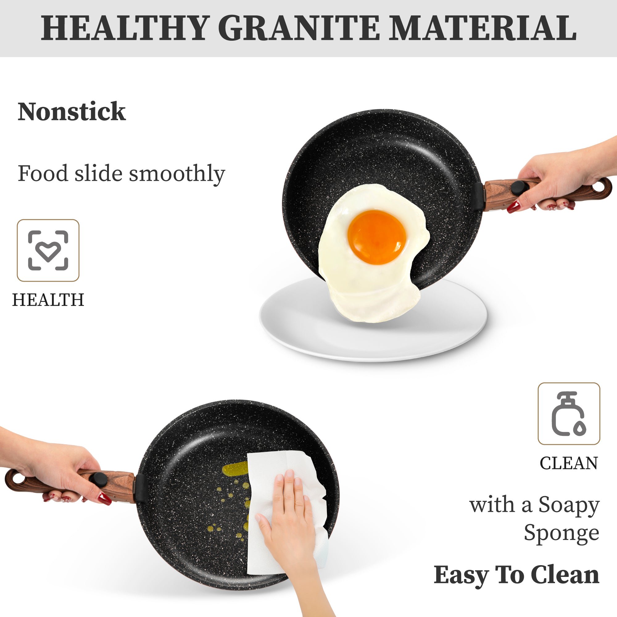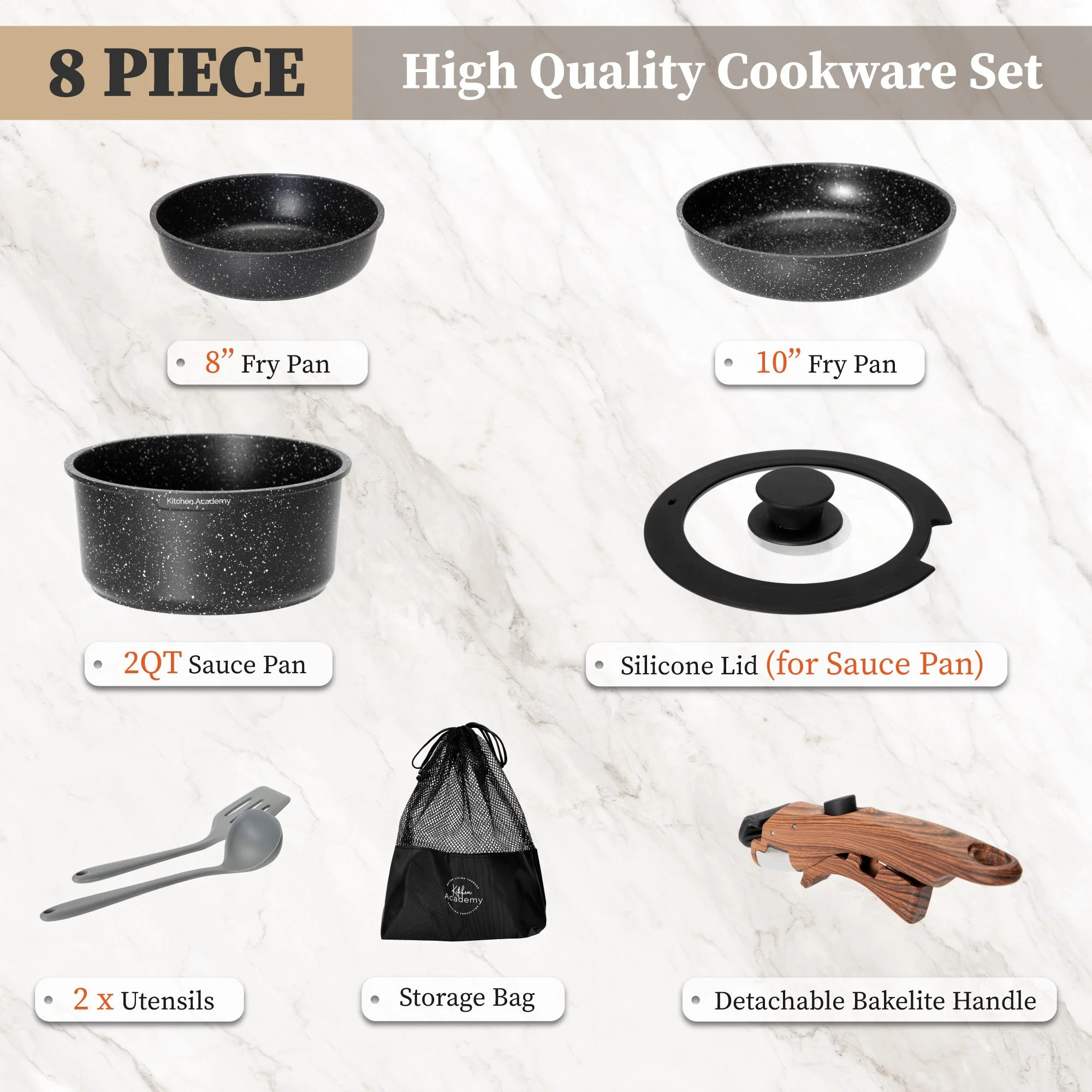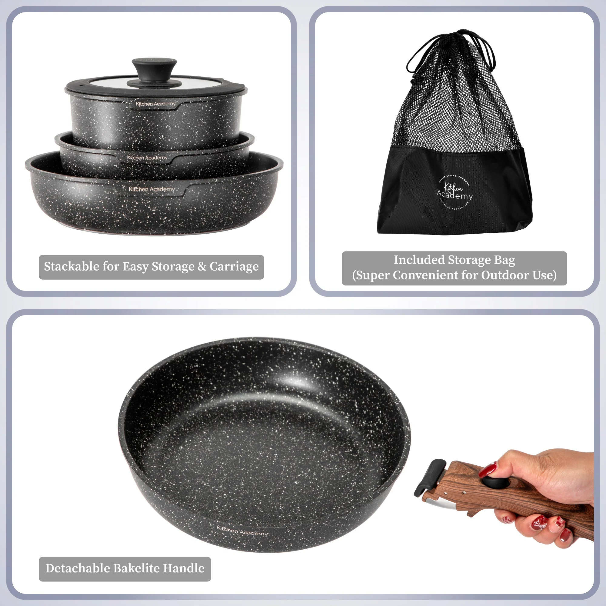 - Space-Saving Design: Stackable cookware set with a detachable handle for easy storage.